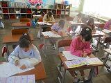 2年生国語では、漢字ドリルを使って、新出漢字の学習をしています。みんな集中して、とても静かに学習していました。4年生体育では、タッチリレーをしています。みんな全力で走りました。