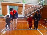 アイマスク体験では、保護者の方と手を携えて歩きました。目が見えないことの大変さを疑似体験しました。