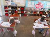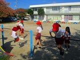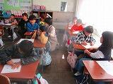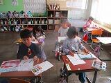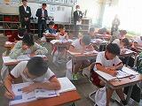 2年生国語では、漢字ドリルを使って、新出漢字の学習をしています。みんな集中して、とても静かに学習していました。4年生体育では、タッチリレーをしています。みんな全力で走りました。