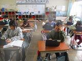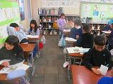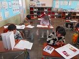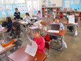 5年生外国語では、リスニングテストに挑戦しています。放送を聞いて、何を表現したか聞き取っていました。