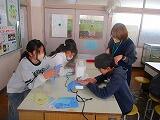 1年生国語では、「ずうっとずっとだいすきだよ」の学習です。物語文を読んで、感じたことを話し合っていました。3年生図工では、「はんが」です。刷った版画の作品に色つけをしていました。色のバランスを考え、きれいな作品ができました。