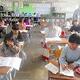 4年生算数では、「変わり方」の学習です。電子黒板の表に数値を書いて、数の変わり方をとらえています。また、グループで平行四辺形をかいています。定規を使って、たくさんの図形をかいていました。