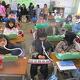 2年生算数では、「はこの形」の学習です。箱の面を紙に映して、切り取っています。どんな形になるか学習していました。6年生図工では、「グッドラック」の学習です。カラフルな作品になってきました。