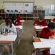 4年生体育では、「ティーボール」の学習です。三角コーンに置いたボールを打って、バッティング練習をしています。ボールにバットを当てることが、とても難しそうでした。2年生は、お持ち帰りバックに絵を描いています。思い思いの絵を描いて、楽しそうでした。