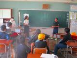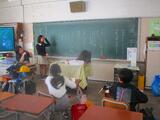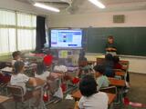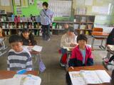 1年生算数では、「たしざん」の学習です。繰り上がりがある数のたし算を、一生懸命考えていました。3年生図工では、「空きようきのへんしん」の学習です。作業の進め方について、電子黒板の映像を見て、確認していました。