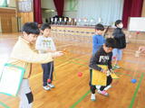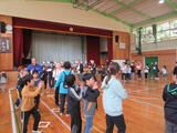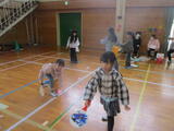 ボランティアふれあい活動部の方々(20名)とベーゴマやけん玉、羽子板、手編みなどの昔遊びを行ったり、ボッチャを行ったりしました。最後は、3年生がダンスを披露したあと、みんなで輪になって「金沢音頭」を踊りました。