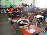 6年生書写では、「将来の夢」を書いています。条幅の用紙に、一字一字ていねいに書いていました。1年生図工では、「じぶんとおさんぽをしているどうぶつをつくろう」です。ねん土を使って、イヌやネコ、ゾウなど、動物を楽しそうに作っていました。