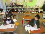5年生学級活動では、新年の抱負をワークシートに書きました。「勉強を頑張りたい」「算数を頑張る」など、それぞれの思いがつづられました。4年生は図書の時間です。久しぶりに図書室で読書を楽しみました。