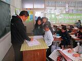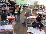 3年生書写では、硬筆です。お手本を見て、ていねいに書いていました。先生にチェックしてもらいながら、練習していました。1年生算数では、「100までのかずのけいさん」の学習です。繰り上がりを確認しながら、計算していました。