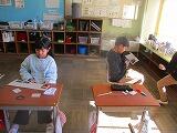 2年生算数では、「はこの形」の学習です。箱の面の形を工作用紙に写して,切り取っていました。6年生外国語では、中学校で入りたい部活動について伝え合っています。サッカー部やテニス部など、自分の希望を伝え合っていました。