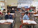 3年生体育では、跳び箱です。台上前転に挑戦しました。タイミングよく、上手に前転していました。5年生社会では、「森林とわたしたちのくらし」の学習です。森林の役割やはたらきについて、調べていました。