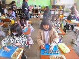 4年生算数では、「立方体と直方体」の学習です。底面や側面などの特色について、とらえていました。1年生図工では、「ねんどですきな○○」の学習です。動物やケーキ、おかし、パンなど、自分が表現したい、思い思いの形をつくっていました。